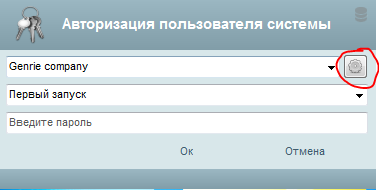 - Для того, чтобы узнать номер базы в программе iStom, вам необходимо открыть окно авторизации программы iStom и нажать на кнопку с шестеренкой.