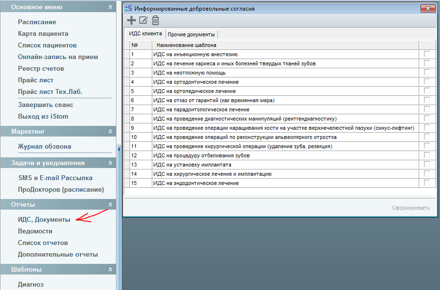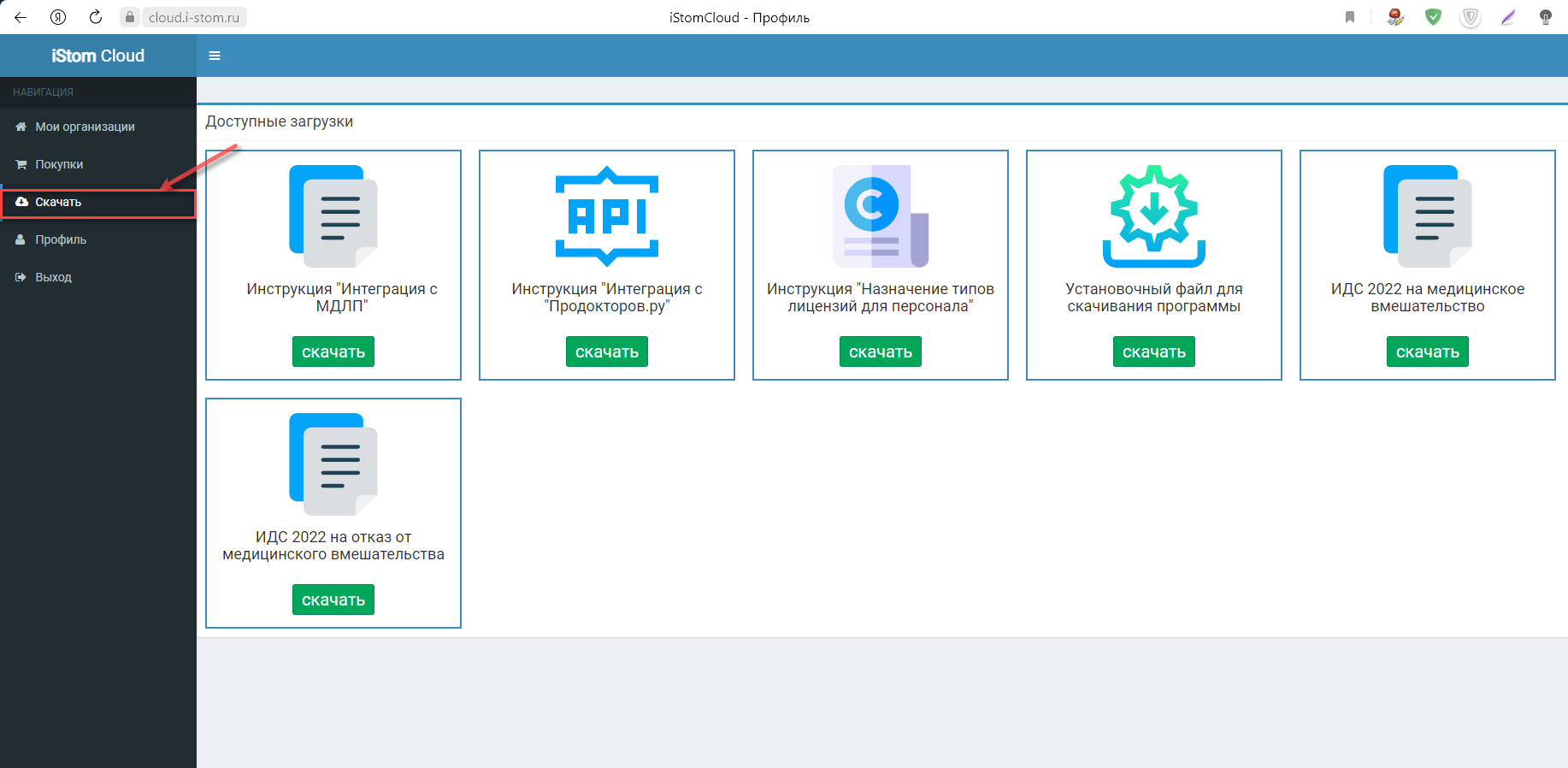 Для того, чтобы добавить в программу актуальные ИДС о медицинском вмешательстве на 2022 год необходимо: 1. Зайти в личный кабинет iStom.