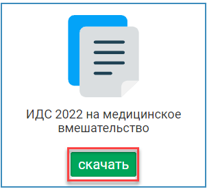 - Нажать кнопку "Скачать", которая находится под файлом "ИДС 2022 на медицинское вмешательство".