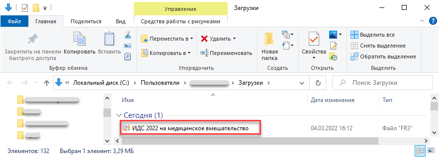 - Открыть папку с сохраненным файлом и переименовать его на "ИДС 2022 на медицинское вмешательство".