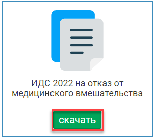- Нажать кнопку "Скачать", которая находится под файлом "ИДС 2022 на отказ от медицинского вмешательства".