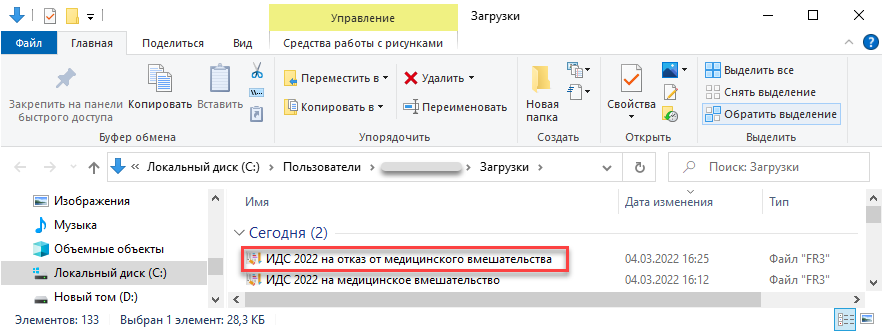 - Открыть папку с сохранённым файлом и переименовать его на "ИДС 2022 на отказ от медицинского вмешательства".
