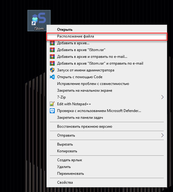 - Открыть папку с файлами iStom (это можно сделать через ярлык программы, как показано на скриншоте):