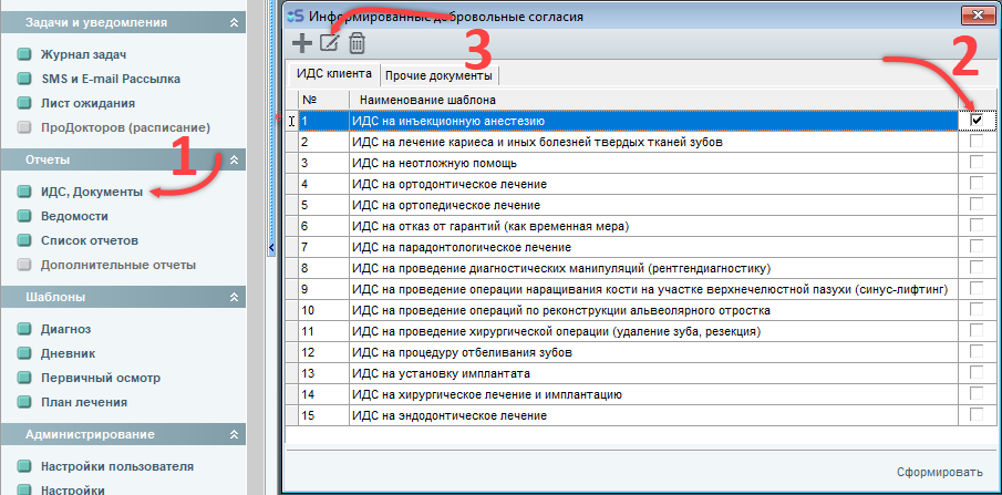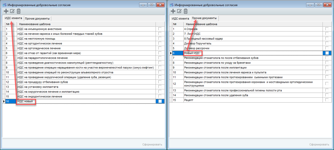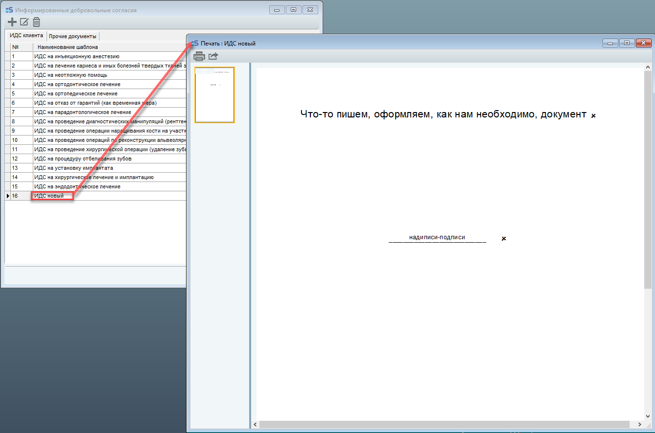 Для того чтобы добавить в программу свой ИДС необходимо открыть окно ИДС, Документы, затем нажать на кнопку добавить и в открывшемся редакторе создать документ, который вы хотите использовать в дальнейшем (информацию по созданию текста в шаблонах и прочих элементов можно найти ниже, в разделе редактирования шаблонов):
