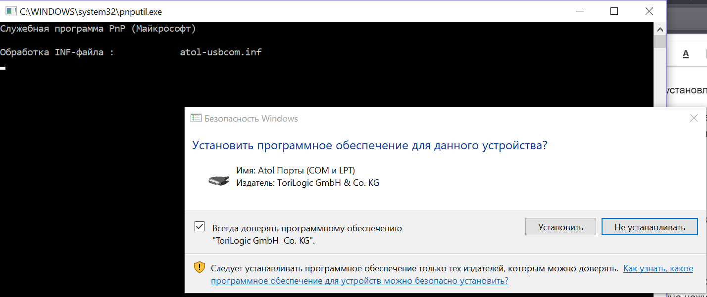 Установка и настройка драйвера АТОЛ¶