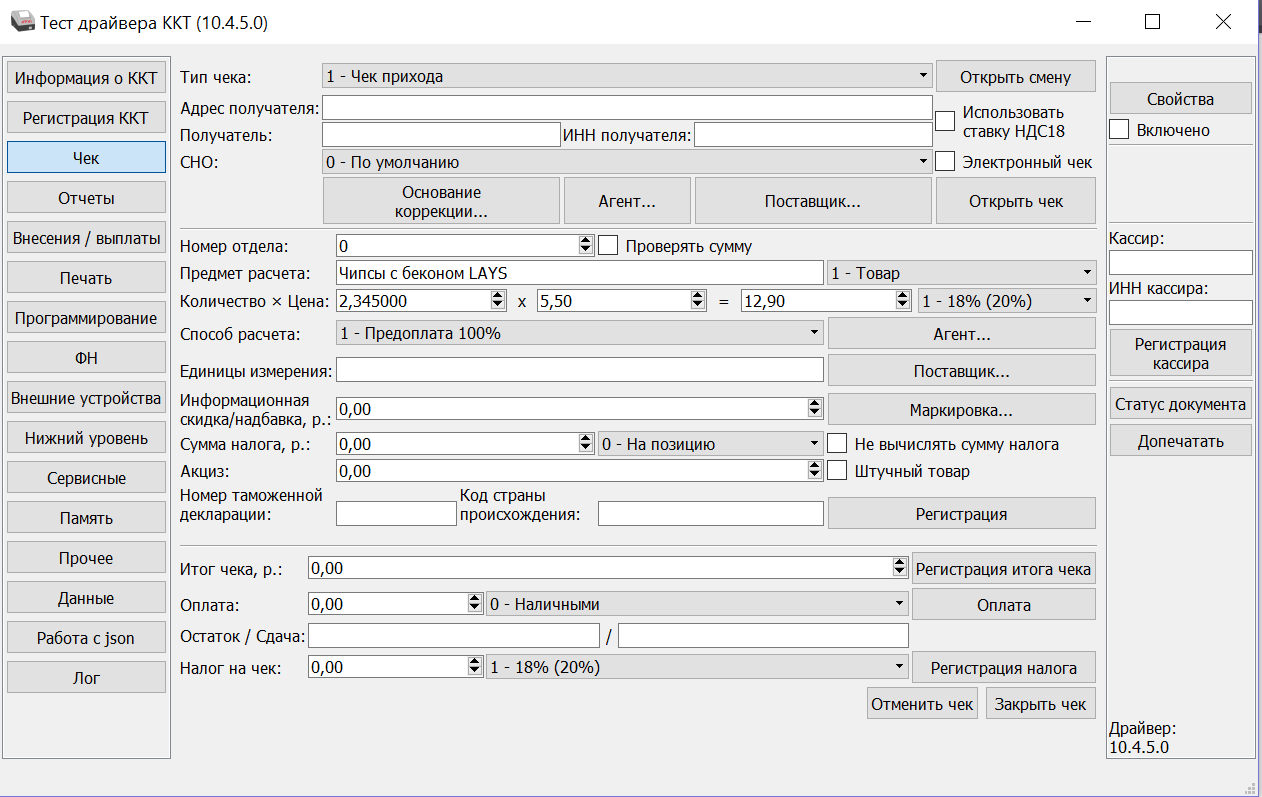 Для начала запускаем прилагающуюся программу к КР - Драйвер ККМ.