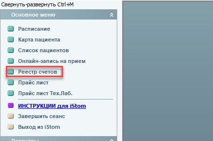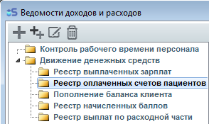 Если не было проведения через фискальный чек, то для отмены оплаты в левом меню необходимо выбрать раздел "Ведомости", нажать на вкладку "Прочие ведомости" внизу окна, выбрать пункт "Реестр оплаченных счетов пациентов", после чего выбрать и удалить необходимый счет.