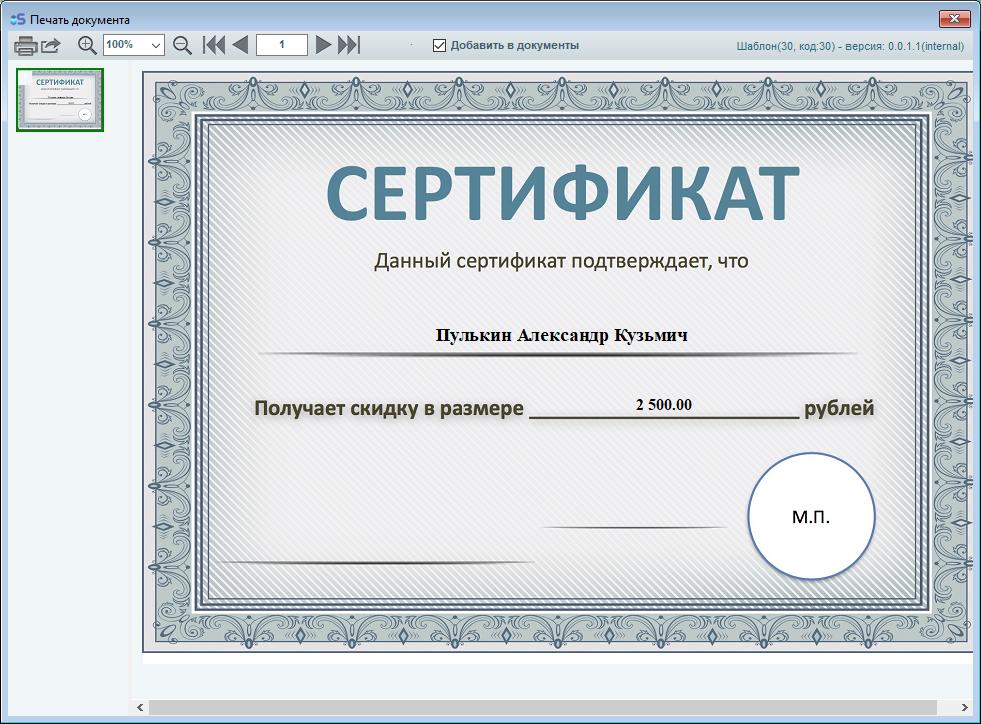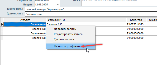 Также присутствует функция печати сертификата на имя родственника.