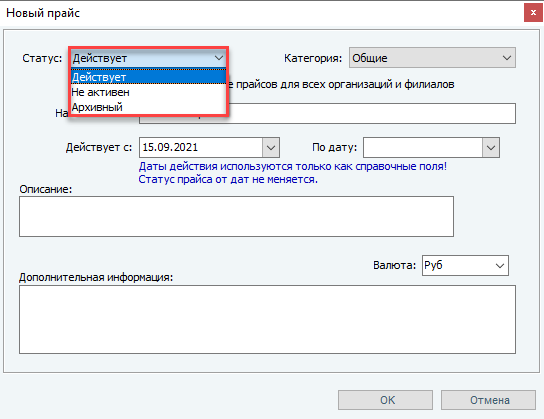Не действует - прайс-лист на данный момент НЕ используется в работе,