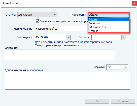 Особые - категория прайс-листов для любых особых целей)